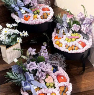 【紫色浪漫】紫色玫瑰花束阳光 玫瑰混搭水果礼盒(工艺繁琐, 需提前预定哟)