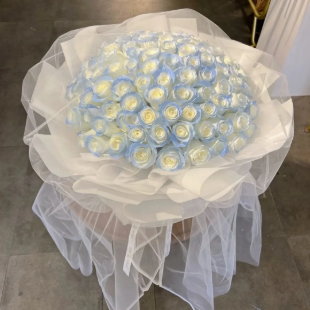 (遇见你遇见爱)99朵碎冰蓝 白色蒙纱款花束